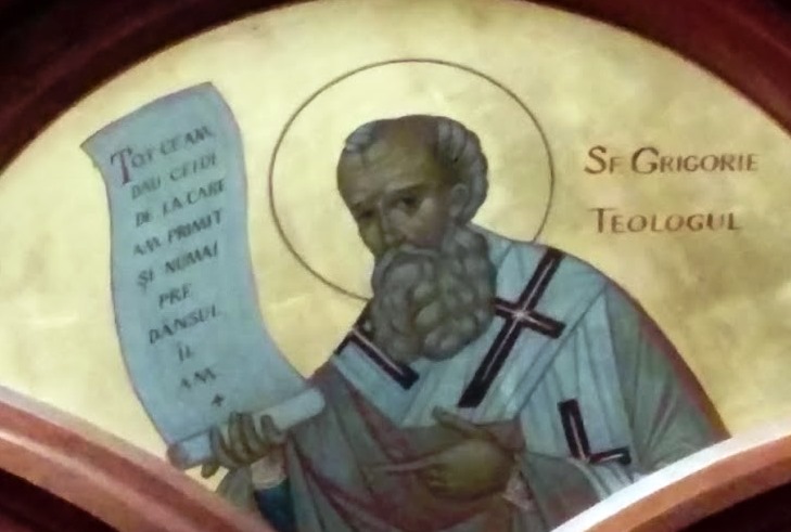 Sfântul Grigorie de Nazianz, numit și Teologul, s-a născut în Arianz, tot în Capadocia, pe la anul 330. A învățat carte în casa parintească, apoi la școlile din Cezareea Capadociei, Cezareea Palestinei și Atena, având coleg pe Sfântul Vasile. Se spunea despre ei că nu cunoșteau decât două drumuri: al bisericii și al școlii. În anul 361 este hirotonit preot, ajunge episcop în anul 371 și a murit în anul 390. Deși a avut o viață zbuciumată, a scris multe cărti de învățătură teologică iar în cuvântările sale vorbeste în chip deosebit despre Sfânta Treime, precizând învățătura Bisericii.